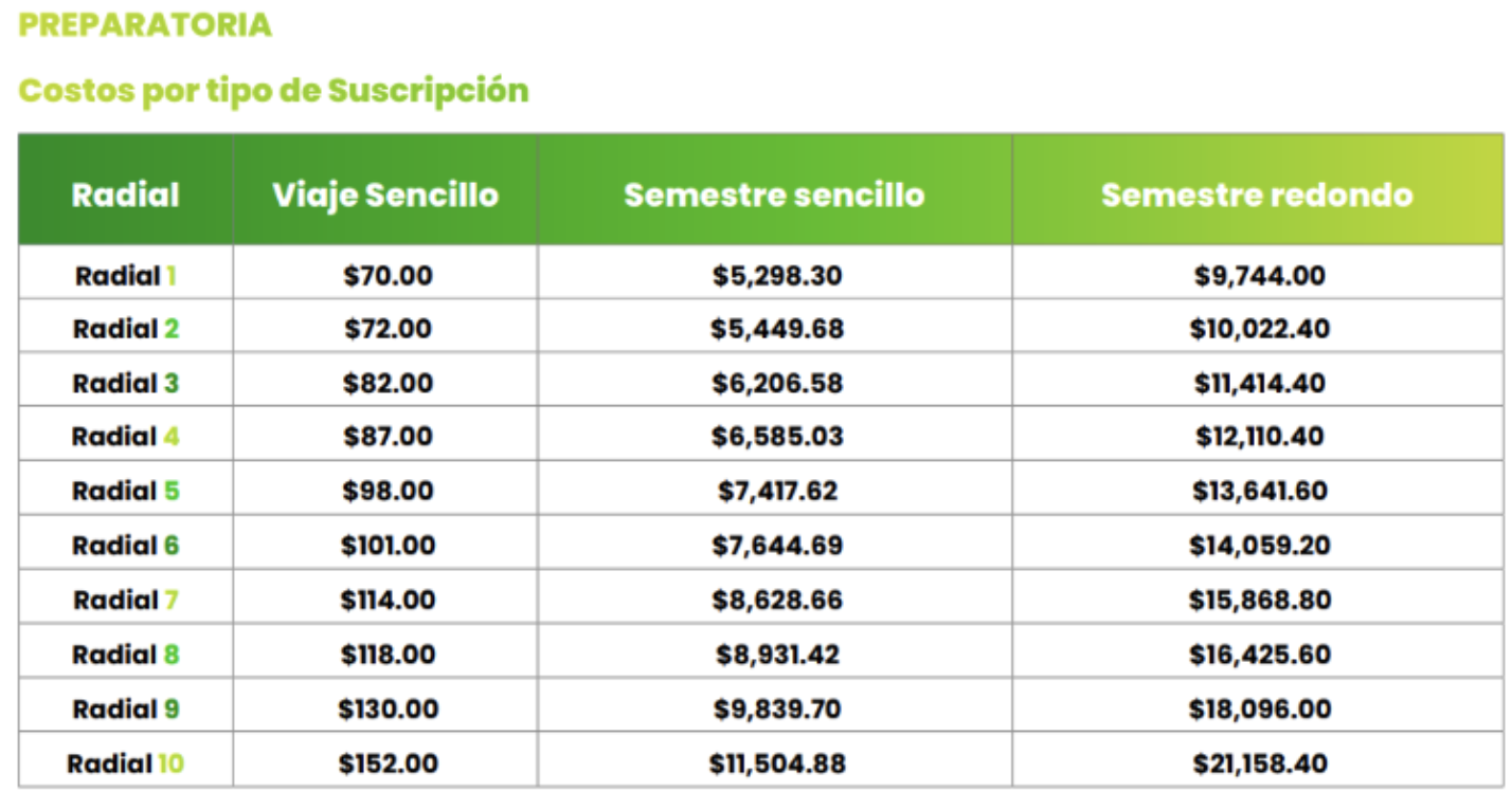 - Suscripción semestral sencilla (solo idas o regresos)