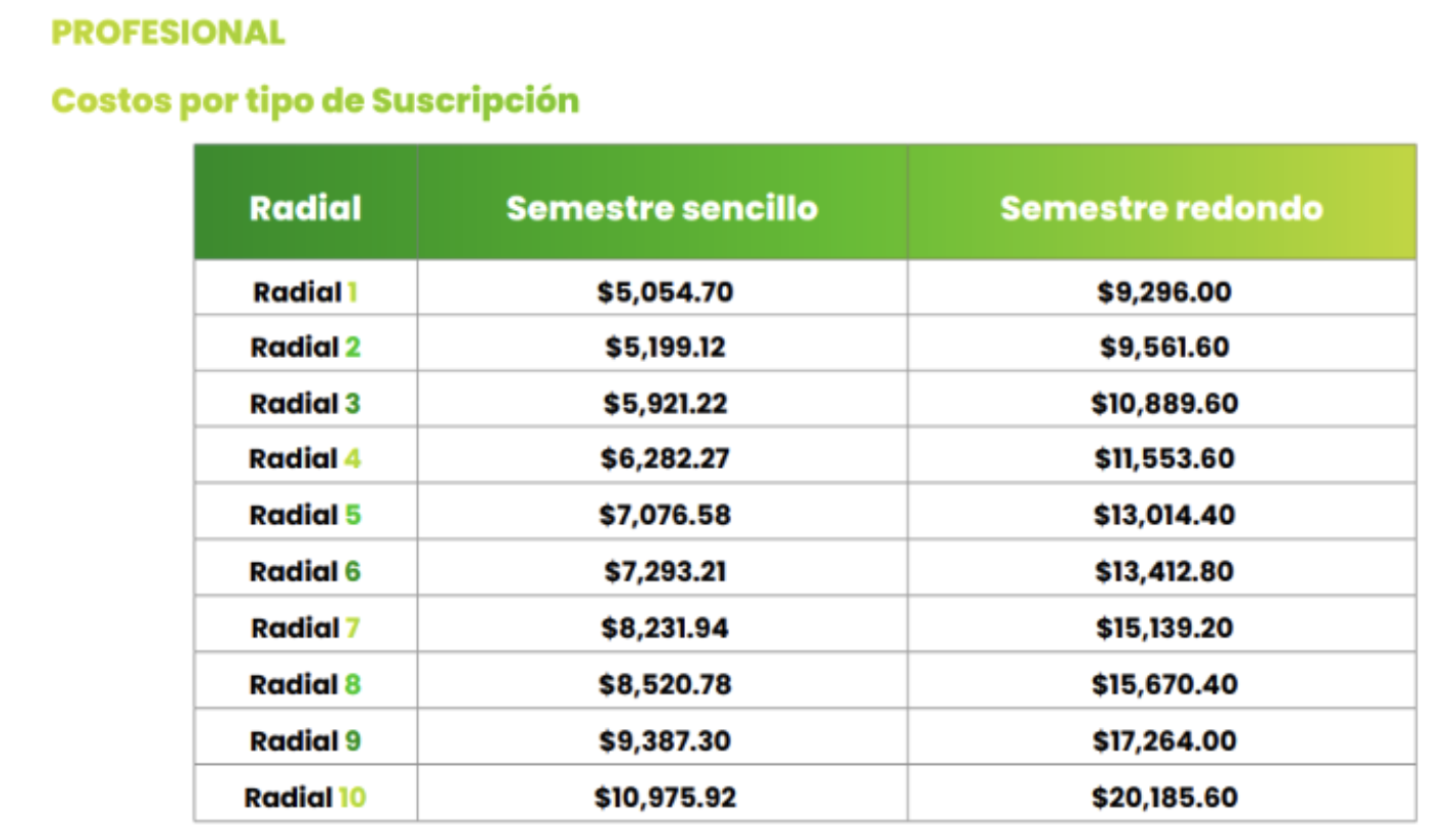 - Suscripción semestral redonda (viajes redondos)